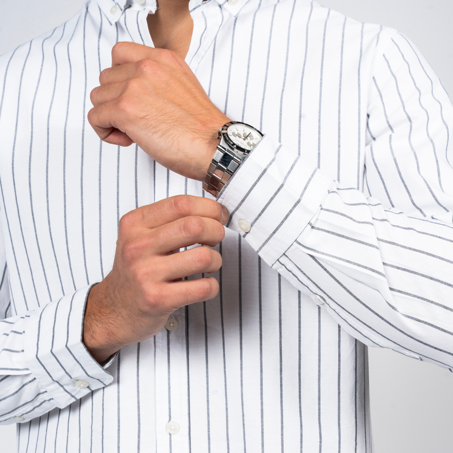 جاكيت قطني بأزرار وقصة مريحة - لون أبيض كريمي